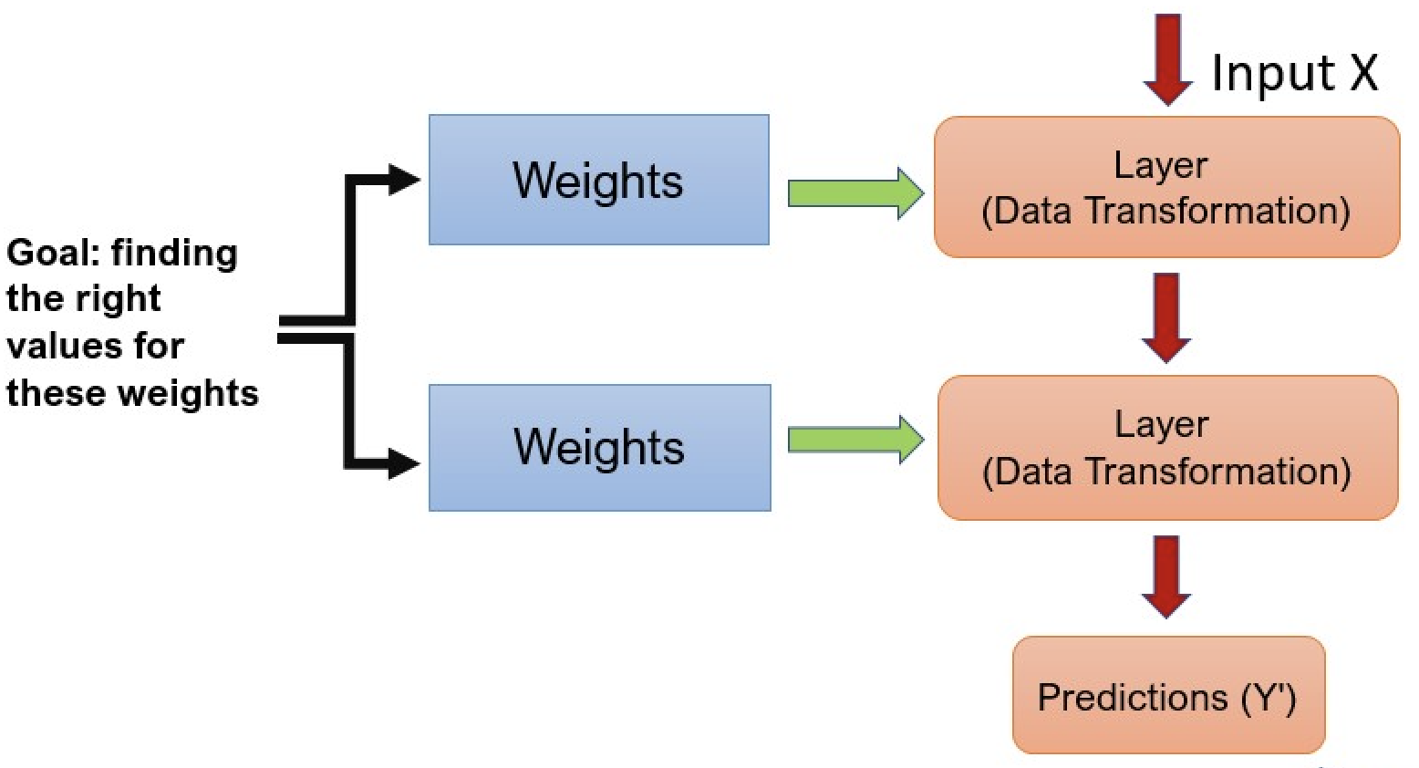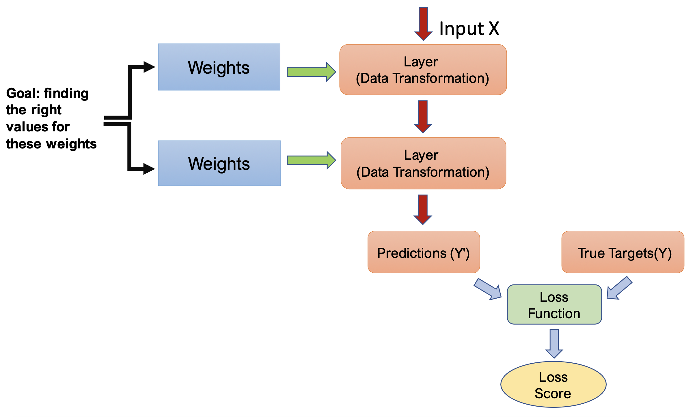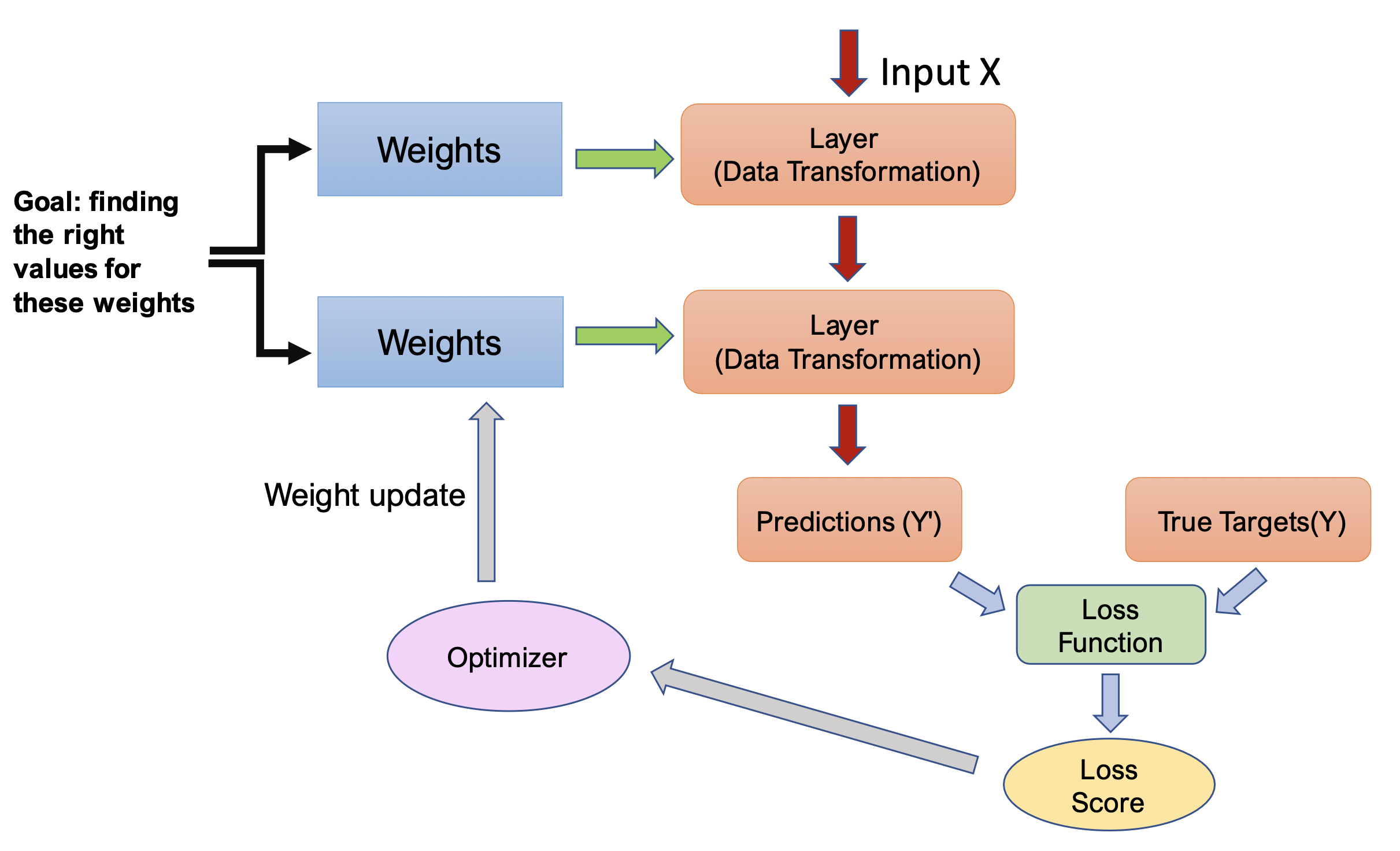 Deep learning’s fundamental technique is to use the loss score as a feedback signal to slightly adjust the weights towards lowering the loss score for the current example. The optimizer performs this adjustment using the Backpropagation algorithm, which is the central algorithm in deep learning.