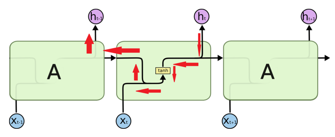 In sequences of considerable length, determining the gradient of the final hidden state, denoted as $h_n$, with respect to the initial hidden state, $h_0$, necessitates the recurrent multiplication of weight matrices $W_{hh}$ and $W_{xh}$. If the largest singular value of these weight matrices is smaller than one, the gradient will vanish; conversely, if the largest singular value surpasses one, the gradient will experience exponential growth in extensive sequences. Gradient clipping provides a solution to prevent the issue of exploding gradients. As the weights are typically initialized close to zero, the largest singular value is often less than one, which leads to the vanishing gradient problem in vanilla RNNs. Long Short-Term Memory (LSTM) networks offer an effective approach to address this challenge, mitigating the vanishing gradient issue.